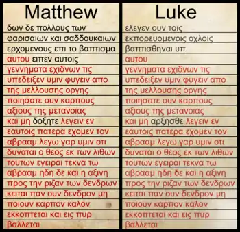 - ↑ Matt 3:7-10 & Luke 3:7-9. Text from 1894 Scrivener New Testament