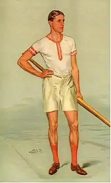 “The finest and handsomest young athlete I ever drew as an under-graduate,” wrote Leslie Ward, “was R.B. Etherington-Smith [(1877-1913)], known to his intimates as ‘Ethel.’”^ In fact Ethel took his first degree in 1899, nine years before Ward drew him for Vanity Fair to mark Leander’s victory in the 1908 London Olympics. At age thirty-one he captained the crew, apologizing to teammate Guy Nickalls who was ten years older: “I suppose they have asked me because I am about half-way down the line between yourself and Bucknall in age.”