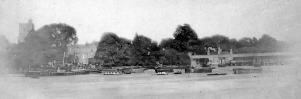 However, all is now over, and Oxford has won once more; and whether it was by half a length or half a mile, she little cares. The sharp drive of the blade through the water, the quick rebound of the hands off the chest, and the pendulum-like swing of the body have won the day again, and we shall still be able to instill the old principles into the ready ears of a rising generation without a qualm of doubt in our inmost souls of the efficacy and truth of those precepts on which we pin our aquatic faith. An account of the actual race is now superfluous; suffice it so say, that Oxford beat Cambridge in America in very much the same way in which she beat Cambridge in England; that a lead to Hammersmith did not ruffle the equanimity of her stroke, that she plodded on behind as usual to Chiswick, and lead as usual in Corney Reach. The race was decided in the old place, abreast of the reservoirs, the only difference being that the Americans kept their rivals harder at work than they have been in some of the ‘Varsity races. . . .