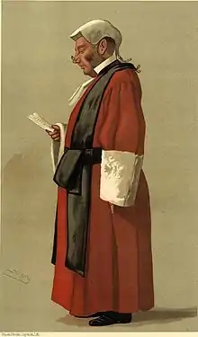 He is not a very brilliant man, but his mental grasp is most comprehensive. He drinks in a new Act of Parliament while other men skim its first section, and intricate accounts in a big commercial case are a delightful exercise to his well-trained mind. He is very lucid, very popular, very good-natured, and very free from serious fault. He never acts, never wastes time, and never sermonises even to criminals when they are found guilty before him. He does not respect persons, he does not advertise, nor does he shirk the most unpleasant work. All which is high praise, but merited both by what he does and what he does not. Not having the gift of tongue in any marked degree, his charges to juries are choppy, and occasionally monotonous; but, being brief, clear, and always to the point, they are none the worse for that. There is only one more youthful Judge on the Bench; but there is also, take him for all in all, only one better. Being wealthy, he works rather for the good of others than himself; and having never been corrupted by Parliament, or by any other form of politics, he is extremely well adapted for the temporary office which he now occupies. He is always courteous even to the more foolish, and consequently more irritating, among juniors. He has much high spirit and much muscular strength; and his shoulders are types of the tremendous, with which he did stout service in the Cambridge Eight. He still loves exercise and the fresh air of Sussex. He is a jolly good fellow, who looks more like a sturdy English Squire than like the good Judge that he is. He is well favoured in all senses; and he wears a pair of pince-nez at the end of his nose.