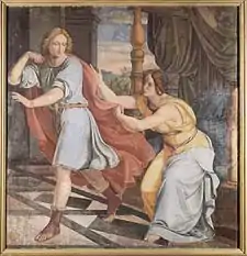 Meanwhile, Pharaoh’s captain of the guard Potiphar bought Joseph from the Ishmaelites. When Potiphar saw that God was with Joseph and prospered all that he did, Potiphar appointed him overseer over his house and gave him charge of all that he had, and God blessed Pharaoh’s house for Joseph’s sake. Joseph was handsome, and Potiphar’s wife repeatedly asked him to lie with her, but he declined, asking how he could sin so against Potiphar and God. One day, when the men of the house were away, she caught him by his garment and asked him to lie with her, but he fled, leaving his garment behind. When Potiphar came home, she accused Joseph of trying to force himself on her, and Potiphar put Joseph in the prison where the king’s prisoners were held.