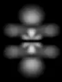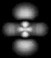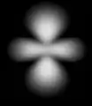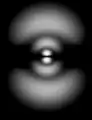 None of these images depicts an atom as it is. This is because it is impossible to even visualize an atom as it is. Whereas the best you can do with the images in the first row is to erase them from your memory—they represent a way of viewing the atom that is too simplified for the way we want to start thinking about it—the eight fuzzy images in the next row deserve scrutiny. Each represents an aspect of a stationary state of atomic hydrogen. You see neither the nucleus (a proton) nor the electron. What you see is a fuzzy position. To be precise, what you see are cloud-like blurs, which are symmetrical about the vertical and horizontal axes, and which represent the atom's internal relative position—the position of the electron relative to the proton or the position of the proton relative to the electron.