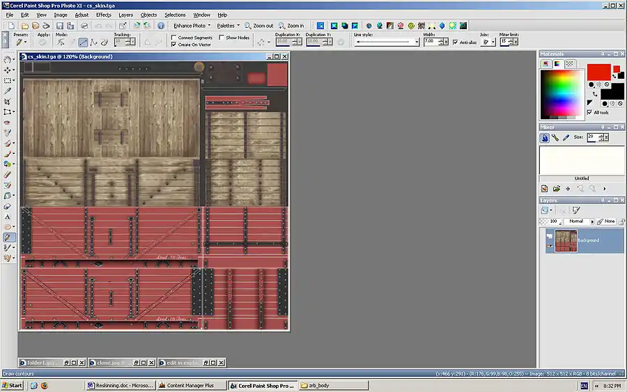 We can see a number of .tga files and generally speaking we are interested in the largest one, cs_skin.tga. Note that this particular model as a couple of alternative cs_skin.tga files that have had their colours changed in a recent version of PaintShop Pro are available in the wagonzip.txt file in the parent folder. To use them overwrite the cs_skin.tga with the appropriate one.