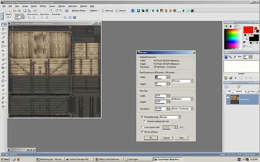 If you open the cs_skin_reskin.tga in the zip file you can see the sizes of these sides and ends. For a photo reskin simply resize the side photo and end photos to these sizes and position them appropriately. You will still need to change the colour of the two squares in the top right corner.