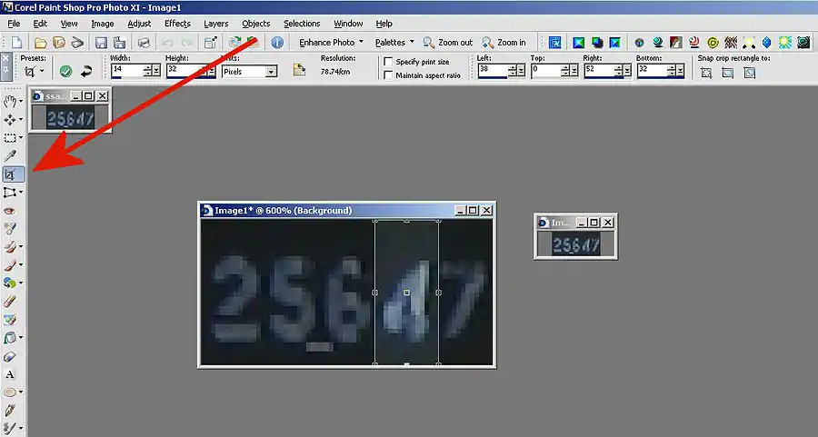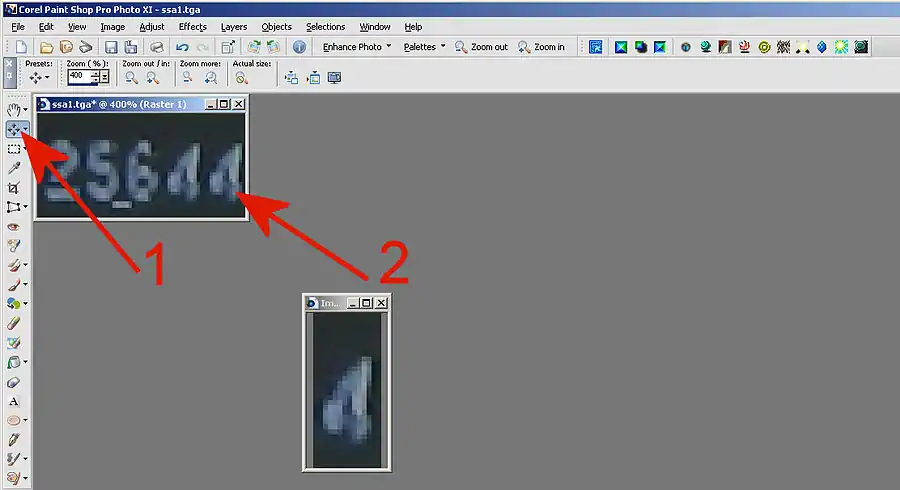 Now use the move tool (1) to position the digit where we want it to be (2).