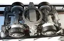 Wheels can be rubber which particulates generate air pollution or metal. Wheelsets can be bogies. Tracks can be trails, roads or guided (rails).