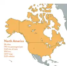 The United States has a number of light rail systems in its mid-sized to large cities. As of October 2016, there are 26 modern light rail systems, 11 modern streetcar systems, and approximately 10 heritage streetcar systems (plus the San Francisco cable car system, and Morgantown's light rail-like Personal Rapid Transit system) offering regular year-round transit service, for a total of over 45 operational light rail-type systems in the United States. The United States has a much larger number of "true" light rail systems (i.e. not including streetcar and heritage streetcar systems), by far, compared to any other country in the world (the next largest are Germany with 10 light rail systems, and Japan with 7).