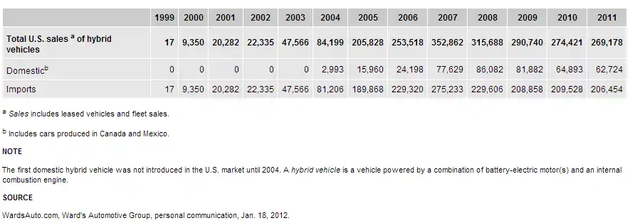 As can been seen in the quantitative analysis below, hybrid electric vehicle sales in the US experienced a very rapid lifecycle.[6] If we consider 1999 the birth of HEV sales in the US, maturity occurred just 8 years later. The birthing years encompass roughly the first 4 years.
