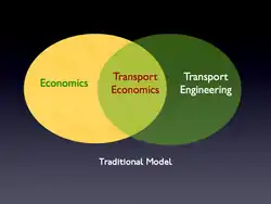Transport Economics is the study of the movement of people and goods over space and time. It is a branch of economics that deals with the allocation of resources within the transport sector. Historically, it has been thought of as the intersection of microeconomics and civil engineering, as shown on the right.