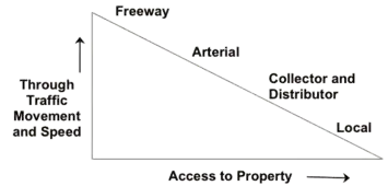 Between limited-access highways and local streets are a middle level of road, collectors, that link local streets with limited-access highways. These “linking collectors” serve both access and mobility functions, since they may also provide access to some adjacent properties. These roads may be considered “congesting” or common goods.