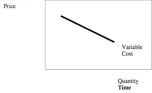 Average variable costs decline with output and time as processes get more efficient (people get smarter). Research and Development is a function of market size, which helps explain the process.