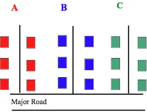 Imagine N farmers, each on cul-de-sac like roads A, B, and C, off of a major road. Then, consider the following two examples: