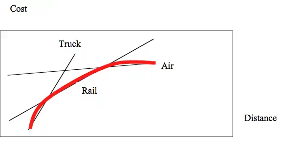Which mode is selected depends on which mode has the lowest cost, typically this can be illustrated with the low cost envelope: