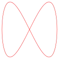Lissajous figures were first mentioned by Nathaniel Bowditch in 1815, and rediscovered by Jules Antoine Lissajous in 1857. If the periods are equal, the curve is always an ellipse. If one period is twice the other, we get a quartic curve; a special case is the lemniscate of Bernouilli.