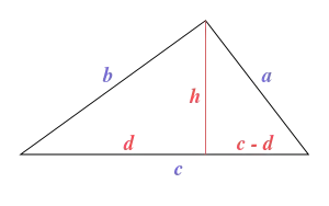 To get closer to the result we need to get an expression for somehow, that does not involve d or h. There is a useful trick in algebra for getting the product of two values from a difference of squares. We can get cd like this: