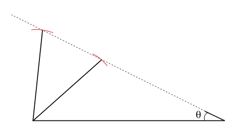 • If , then there is no angle that meets the given information, so no triangle can be formed with the given sides and angle. This is because the side is too short to reach the dotted line, whatever position it is in.