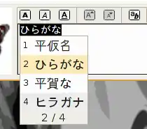 Typing Hiragana (Japanese) in Gaim. Uim opens up a menu for user selection of homophones.