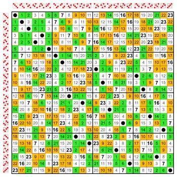![]() Cayley table of the symmetric group S4 The odd permutations are colored: Transpositions in green and 4-cycles in orange | ![]() Cayley table of the alternating group A4 Elements: The even permutations (the identity, eight 3-cycles and three double-transpositions (double transpositions in boldface)) Subgroups: ![]() ![]() ![]() ![]() ![]() |