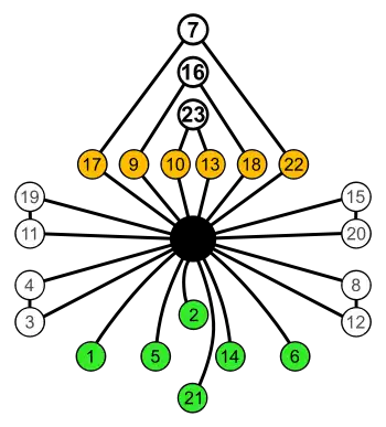 ![]() Cycle graph of S4 | ![]() Cycle graph of A4 (using a similar structure to the cycle graph of S4 on the left) |