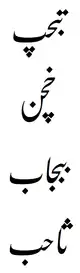 | بچ | بچب | چا | چ | "ch" |