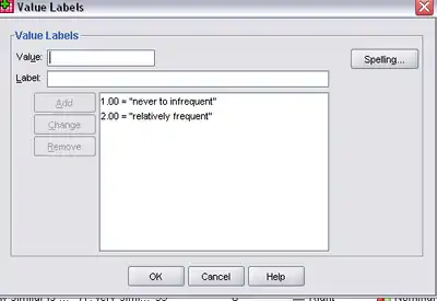 You might expect this to be done for you but the final step is to click the Variable View tab, and in the new variable's Values cell, edit the Value Labels to reflect the newly recoded values: