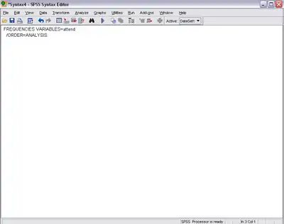 To copy the syntax, you will have to double-click on it, then select it and hit CTRL+C (the copy command in most operating systems). Now return to the Syntax Editor window and paste the syntax into the blank syntax window you have already opened, it should look like this: