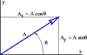 The quantities , , etc., represent the Cartesian components of the vectors in figure 2. A vector can be represented either by its Cartesian components, which are just the projections of the vector onto the Cartesian coordinate axes, or by its direction and magnitude. The direction of a vector in two dimensions is generally represented by the counterclockwise angle of the vector relative to the axis, as shown in figure 2. Conversion from one form to the other is given by the equations