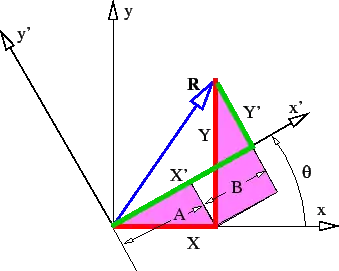 Figure 2.4 shows the vector resolved in two coordinate systems rotated with respect to each other. From this figure it is clear that . Focusing on the shaded triangles, we see that and . Thus, we find . Similar reasoning shows that (Just imagine to rotate the constructs in the image further 90° without changing the axis-names. You will instantly notice that in the second quadrant X is negative while Y positive).