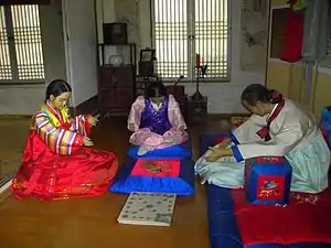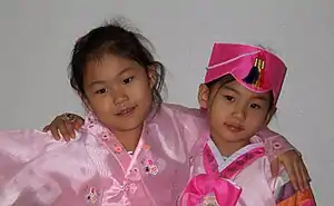 Hanbok or chosŏn-ot is the traditional Korean dress. It is characterized by vibrant colors and simple lines without pockets.