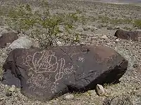 As far as we know, the Mound Builders never invented written language with an alphabet. There are, however, images which have been carved into rocks and in caves, as well as inscribed onto everyday objects like pottery. These can be found throughout North America. These images are called petroglyphs.