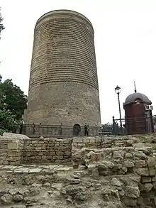 Maiden Tower (Qiz Qalasi) - It was built in the 12th century originally on the shore of Caspian Sea supposedly to serve as a watch tower(later due to land reclamation, the tower is no more near the Caspian Sea) . It's an important part of Azerbaijani history considering that it features on the country's currency notes. The name of Maiden Tower are purportedly come from local tales as followed: A foreign prince fell in love with Azerbaijan's King beautiful daughter and wished to marry her. Horrified, the princess tried to delay the nuptials by asking her father to build the biggest tower she had ever seen. When the tower was completed, the princess went up to admire the view and threw herself into the waves of the Caspian, lapping against the tower walls below.