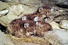 When the young are born, they are blind and keep their eyes closed. They will open their eyes in about 10 days to 14 days after birth. Most young also have different markings from their parents when they are born. Lion and puma cubs have spots or splotches that disappear as they get older. Clouded leopard cubs have dark spots that eventually change into the shape of the adult spots. Cheetahs are one kind of cat in which the cubs have the same spots as the adults.