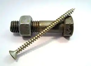 Bolts are a type of screw that usually is designed to work with a nut or another threaded fastener.