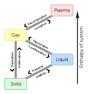 Each state is also known as a phase. Elements can change from one phase to another under certain physical conditions. These conditions are temperature and pressure. Temperature is related to the amount of heat a substance has, and pressure is the amount of force "squeezing" the substance. Deep underwater there is high pressure, and atop a mountain there is low pressure.
