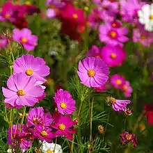 CosmosCosmos are a beautiful flower, which comes in many colors. It first grew in Mexico and southern United States. Cosmos take at least 12 weeks to grow fully before they have full flowers, which are usually 3" to 4" in size. They also attract butterflies! DirectionsWith your Cosmos seeds and all of your tools ready, it is time to plant and grow some Cosmos! ![]() A Cosmos seed. Step 1First, you have to separate and count the seeds that you want to plant. Cosmos seeds are pretty big, so you can separate them by hand pretty easily. ![]() Leave a little space from the top of the pot. Step 2Then, either use your hands or a small cup to put your soil into the pot. This can be messy! You might want to do this outside, or over your sink because the soil can clump together and spill. Fill the pot with soil until it is close to the top. Gently push on the soil so it is a little firm, but do not too push too hard.