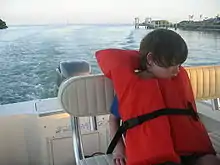 A lifejacket is designed to keep you afloat if you fall out of the boat. Everyone in the boat needs to wear one, even if they can swim. Lifejackets will keep your face out of the water even if you're not awake, but only if you're wearing it. If you ever go out in a boat, make sure everyone is wearing a lifejacket!