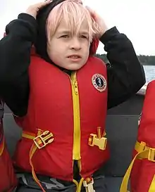 A lifejacket should fit snugly around your chest, and you shouldn't be able to pull it off over your head with your arms up. For small children, there may be a strap that goes between the legs to make sure it doesn't come off over their head. Make sure you do up all the zippers, buckles and straps.