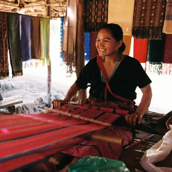 WEAVER What is the smooth dark wood piece in her hands used for?