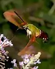 ![]() Hemaris diffinis, the snowberry clearwing. Adult pictured. |