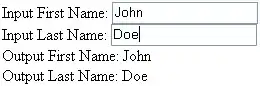 The screen image is similar to input programs from a prior example. This example has two input fields for a person's first and last name and two output controls.