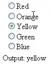 In the example below, the instance variable MyCode inside MyModel will be set to the value selected by the radio buttons control.