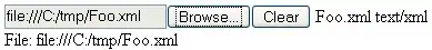 Here is a screen image of the Firefox XForms extension upload control after the C:\tmp\Foo.xml file was selected: