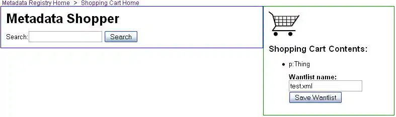 Here is a sample screen image showing the shopping cart after several metadata elements have been added to it.