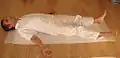 5. Relaxation = We lie down. We move a little our feet and then stop a minute every thought. We relax a minute.