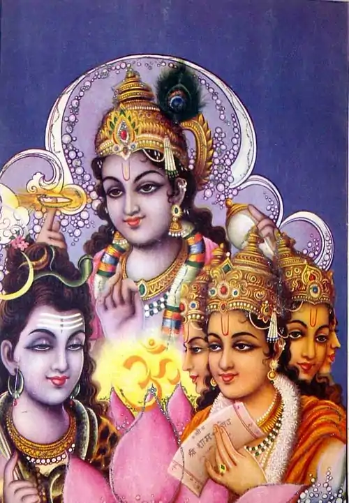 The "Trimurti" (Sanskrit, "three forms") is a concept in Hinduism "in which the cosmic functions of creation, maintenance, and destruction are personified by the forms of Brahma the creator, Vishnu the preserver and Shiva the destroyer or transformer." These three gods have been called "the Hindu triad" or the "Great Trinity", often addressed as "Brahma-Vishnu-Maheswara." They are actually manifestation of One person in three forms who is called Svayam Bhagavan. Svayam Bhagavan ("The Lord" or "The Lord Himself") is a Sanskrit theological term for the concept of absolute representation of God as Bhagavan within Hinduism.