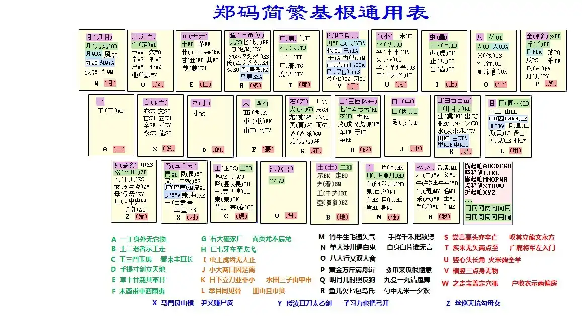 The Zhengma input method (郑码输入法 zhèngmǎ shūrùfǎ) is a Chinese shape based input method. In the following it will just be called Zhengma. This guide is intended for English speakers learning Chinese, and it is necessary that the reader is familiar with Chinese stroke order. It is based on personal experience and instructional material available on Wikimedia commons.