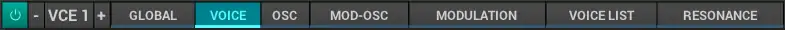 There are 8 voices that can be selected either from the list on the left (below the ADD button) or from the top left corner of the main AdSynth screen.