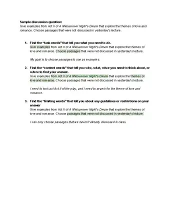 Discussion questions are a great way to explore and apply concepts with critical thinking. Despite many different wordings, the questions are specifically phrased to let you know exactly how to answer them. By breaking the questions down into parts, creating a strong response can be much easier than it seems!