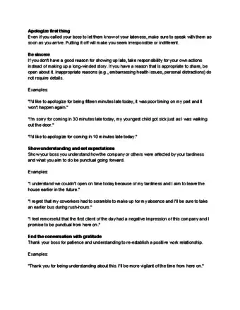 - You should give an apology in person even if you called in beforehand to tell your employer that you were going to be late.[5]