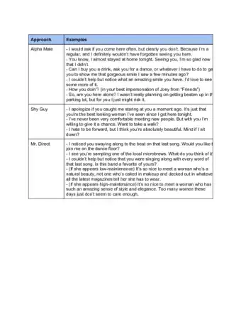 - "I know you probably get this a lot, but you're absolutely the most stunning woman I've seen..."